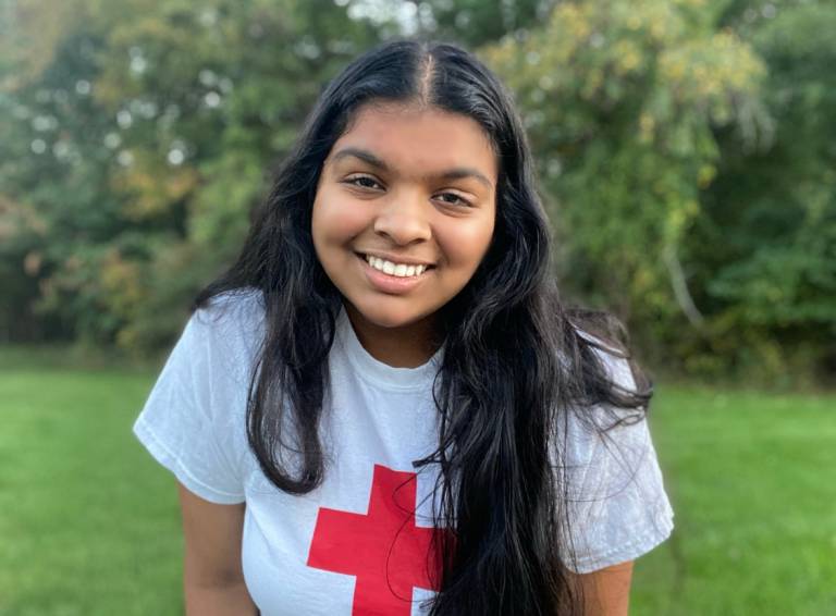 NEW JERSEY REGION Arthi Venkatakrishnam first became interested in the Red Cross when Hurricane Sandy hit New Jersey in 2012 and she witnessed volunteers helping. At age 13, she became a volunteer and joined the Princeton Youth Council. In 2019 she got involved with the Red Cross' International Humanitarian Law (IHL), speaking with former refugees and current high school students at Aiken High School in Ohio. She produced a podcast that received recognition from both the Red Cross and National Public Radio (NPR).