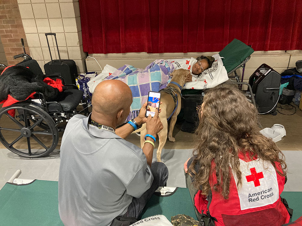 On Sunday afternoon, Kelsey came into the shelter asking if the Red Cross would allow a couple and their dog to stay. She cried tears of relief when she learned that the shelter accepted animals. Kelsey and the couple had visited three other shelters and were turned away at each.