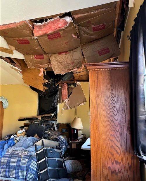 It was then that Robin realized that things were about to go from bad to worse and decided to move to the center of the house. A few minutes later, a big tree came crashing through ceiling and ended up where she had been sitting.