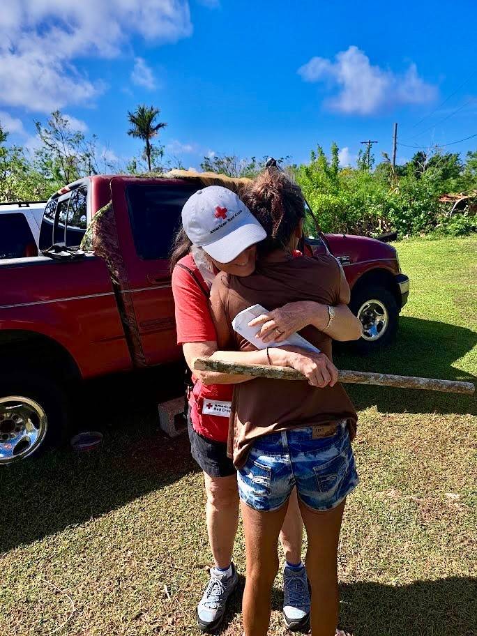 Rayna Rogerson has deployed more than 20 times with the American Red Cross; she played a critical role in the aftermath of Typhoon Mawar. Deployed to Guam for three weeks, Rayna's mission was to conduct Damage Assessments, evaluating the destruction caused by the typhoon and classifying the damage to homes to provide immediate assistance.